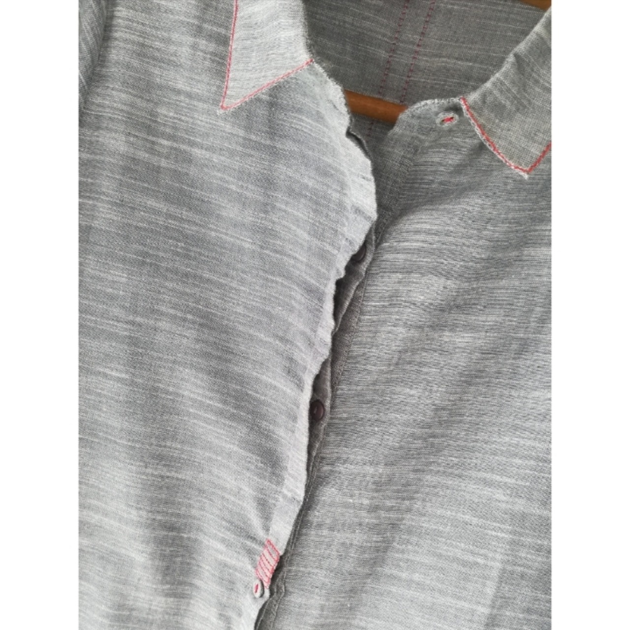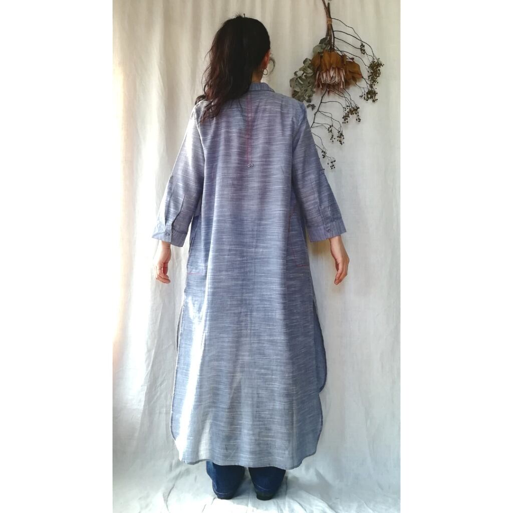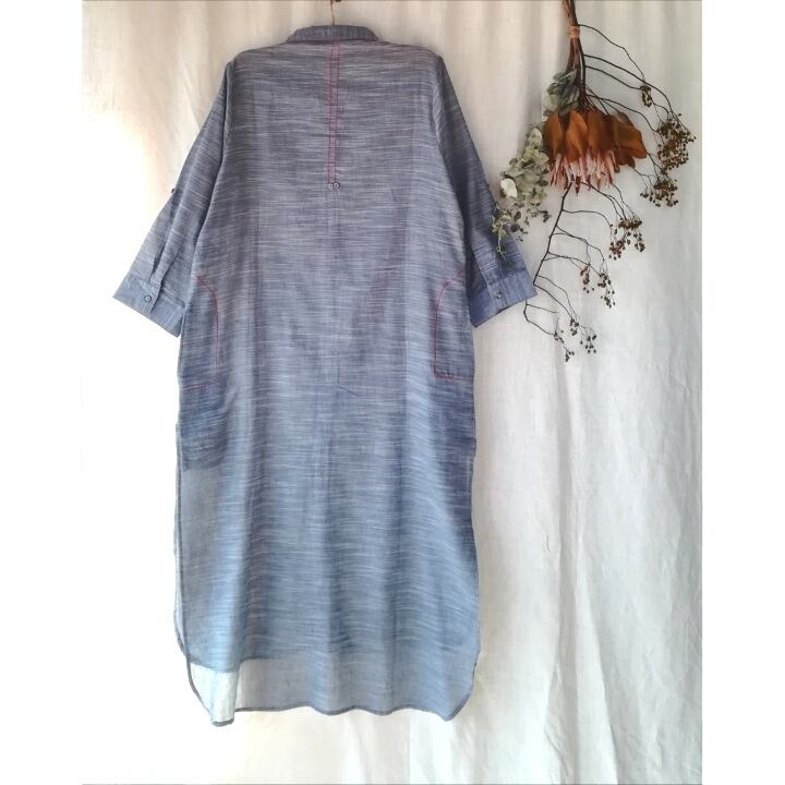 カラーは落ち着いたややグレイッシュなシャンブレーライトブルー。