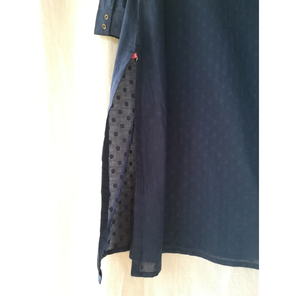 Cotton Dot kurta コットン ドット サイドスリット チュニック ロング クルティ クルタ NAVY bib02