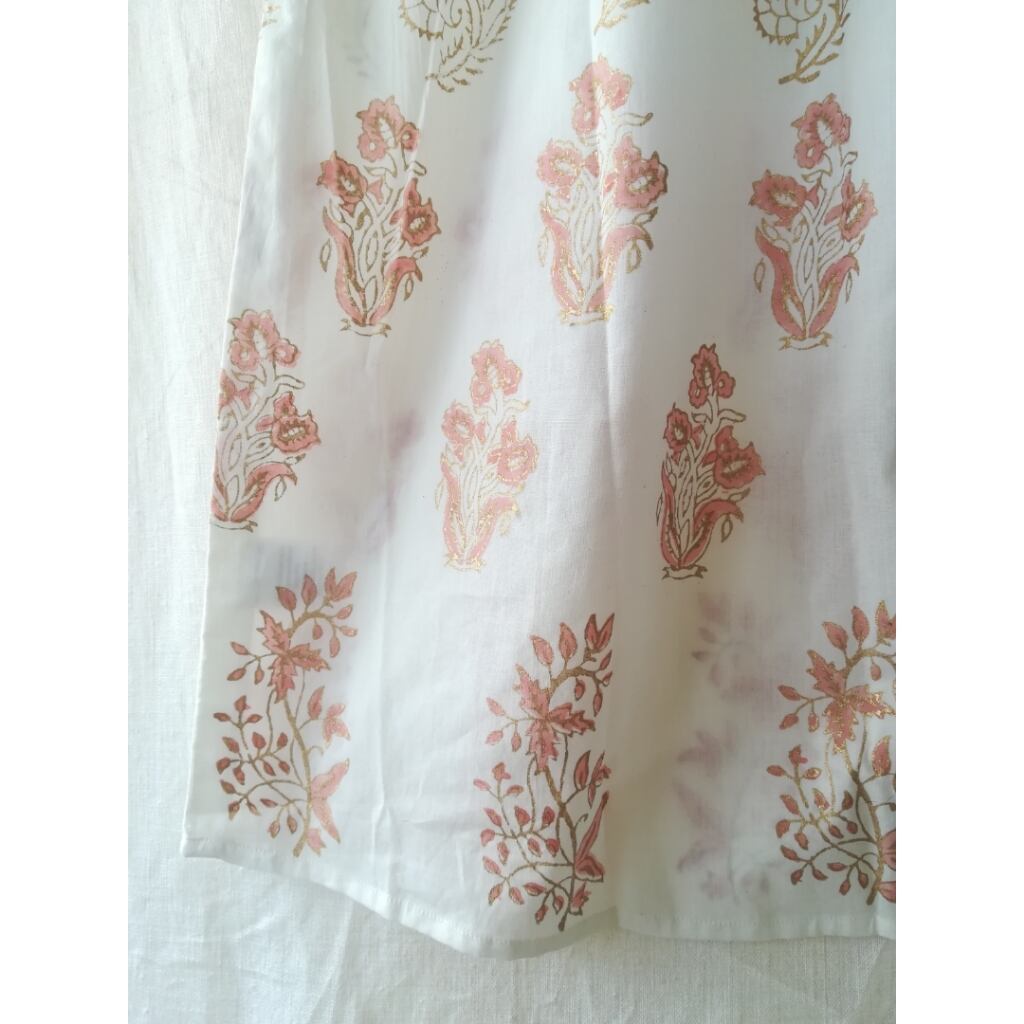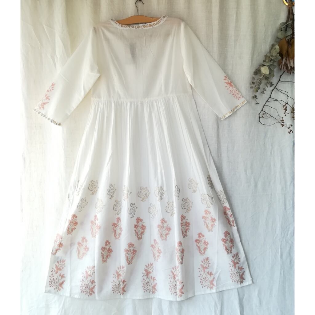 ハンド ブロックプリント エンパイア ワンピース Hand Blockprint Dress WHITE×PINK ima04