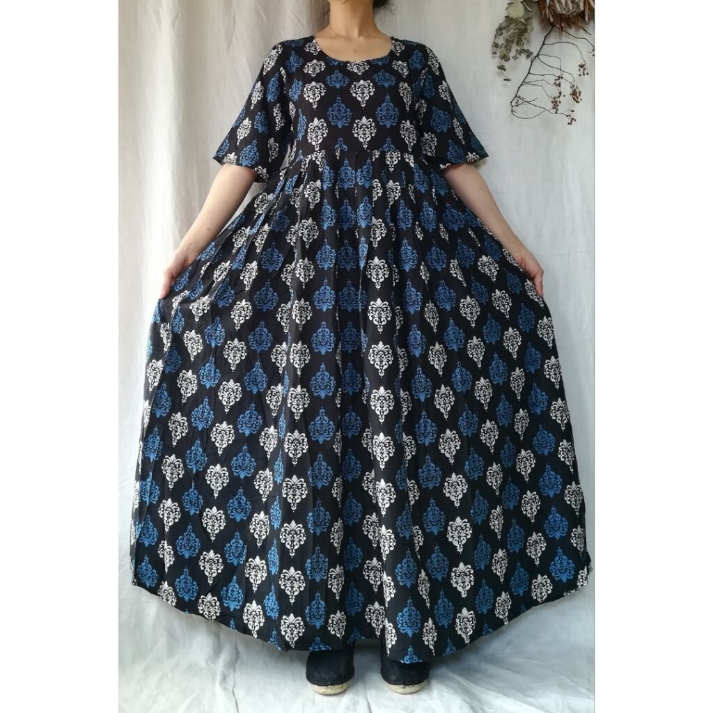 インドの味のある伝統技法ブロックプリント風のエスニックプリント。