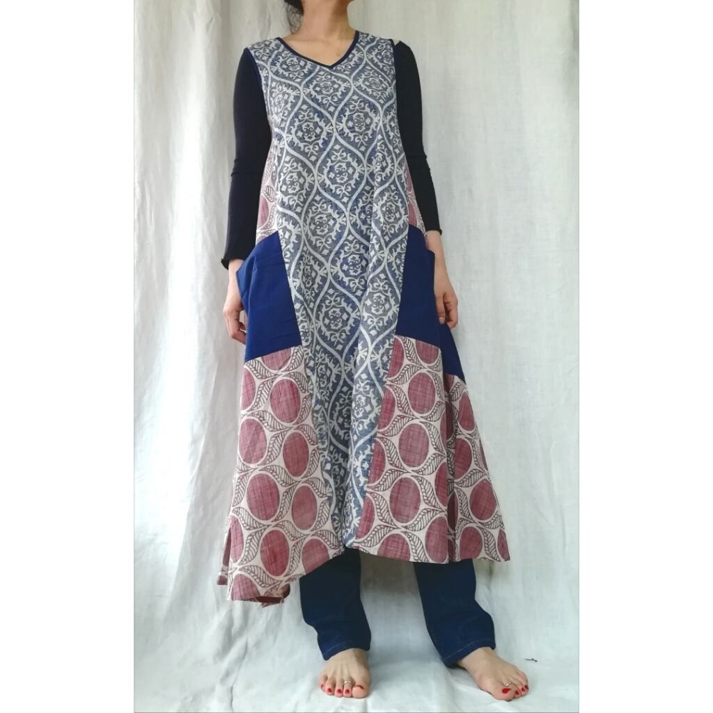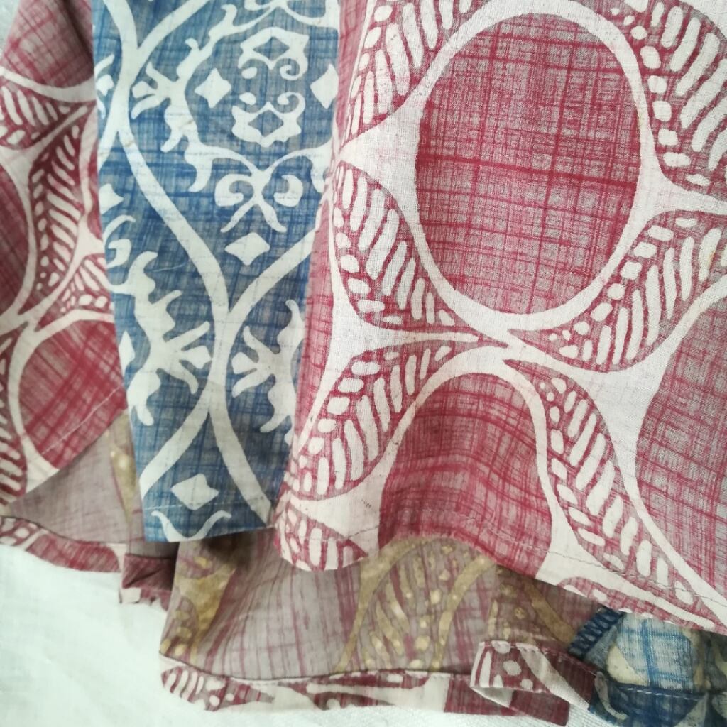 丁寧にブロックプリントされ、天然染料でダブプリント(染め抜き)された生地を使用。