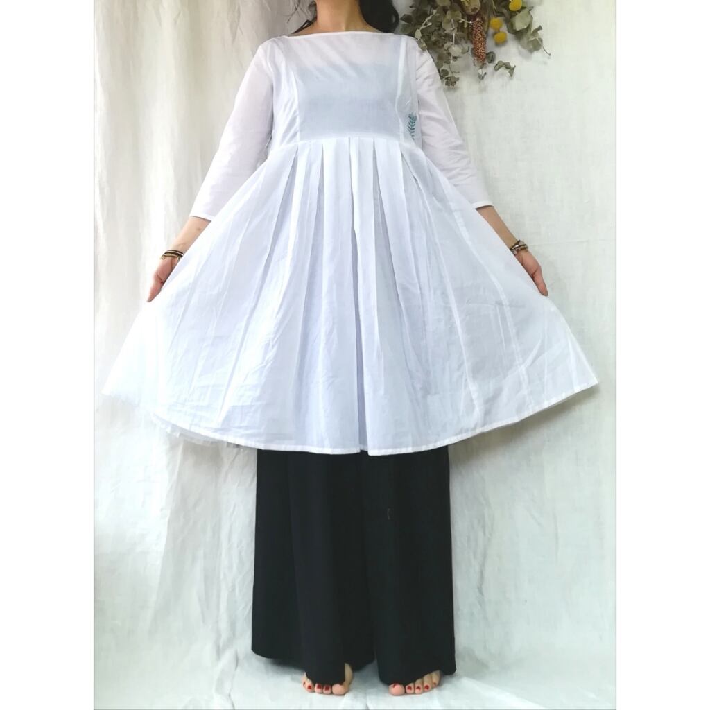 ワンポイントのみのブロックプリント。シンプルで着やすいです。