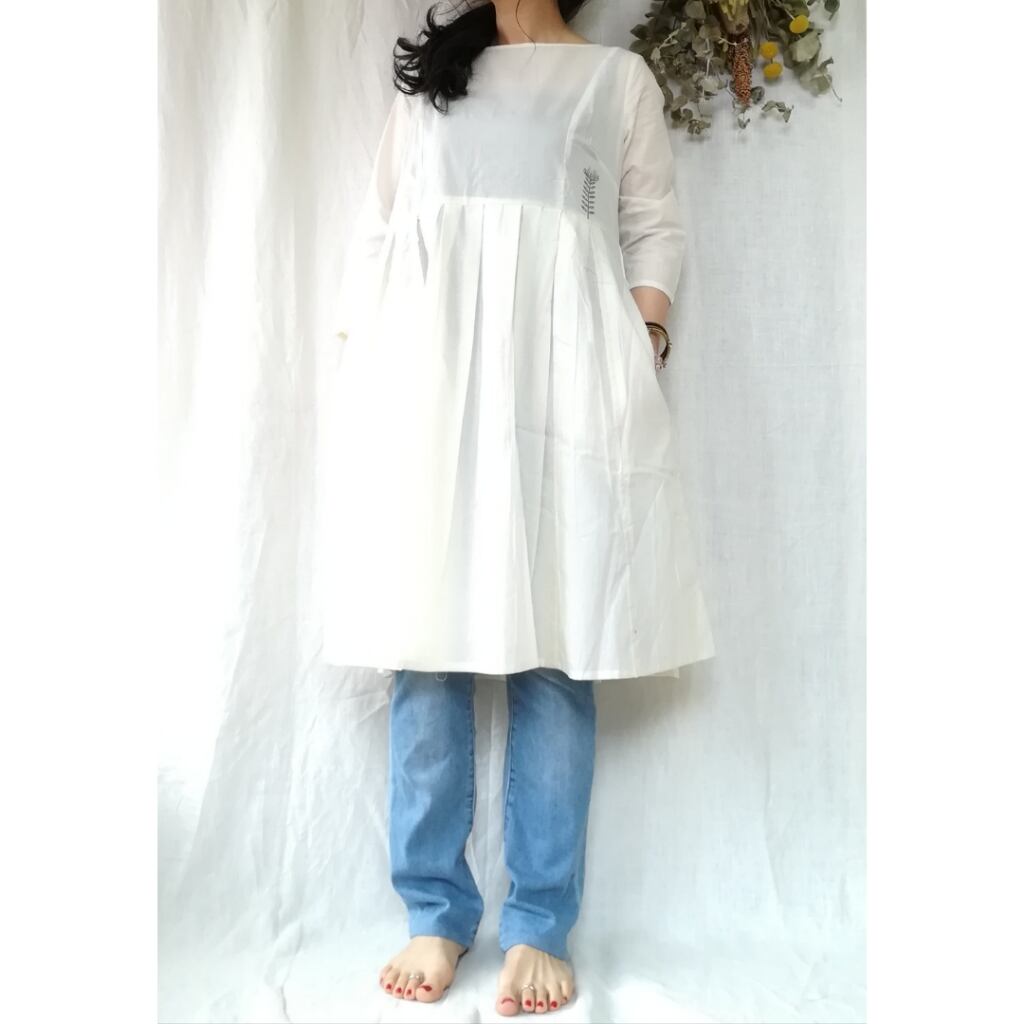 ワンポイントのみのブロックプリント。シンプルで着やすいです。