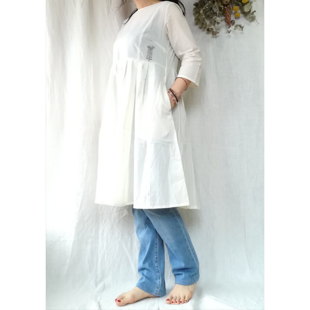 ワンポイントのみのブロックプリント。シンプルで着やすいです。