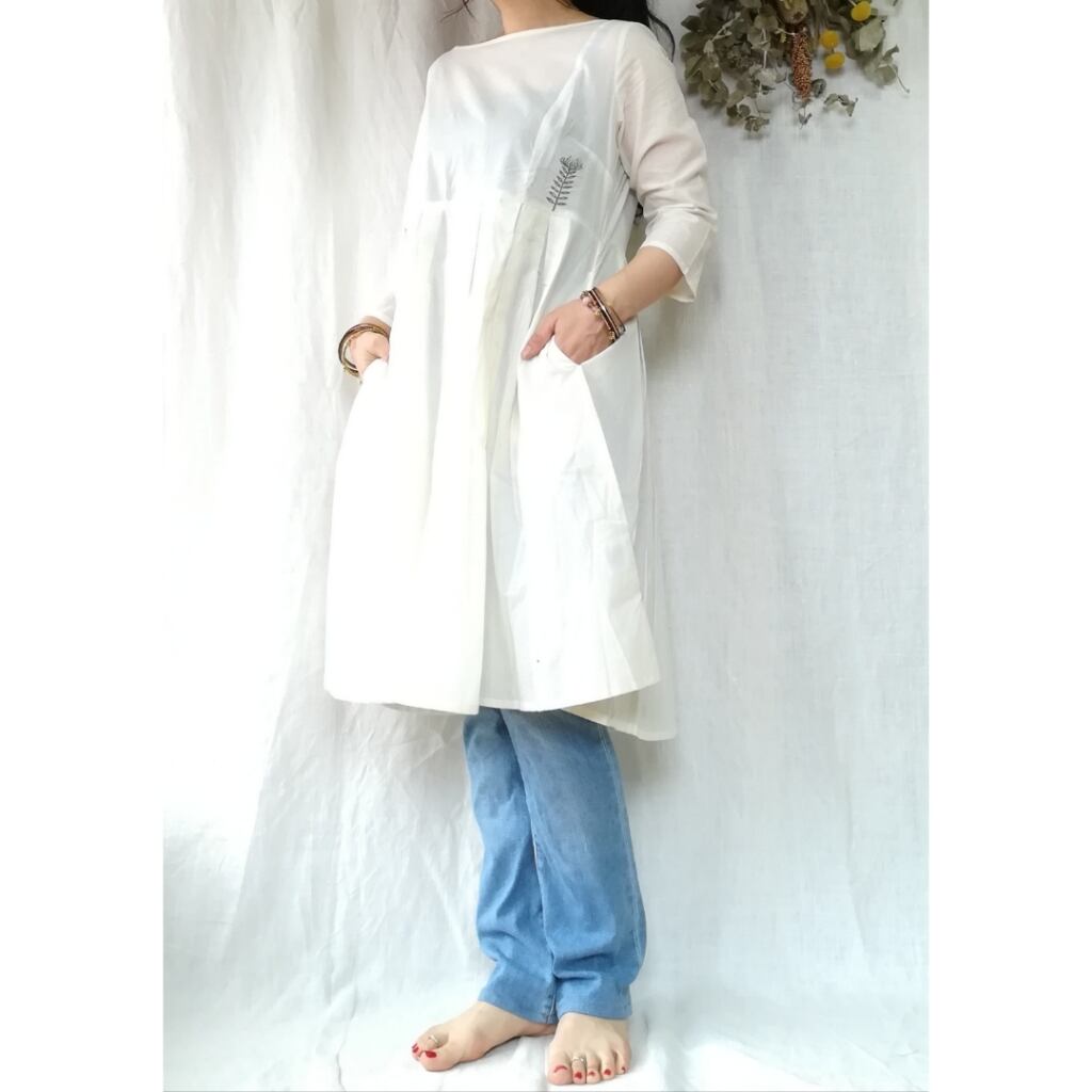 スカート、ワイドパンツと合わせてチュニック風にしても雰囲気が出ます。