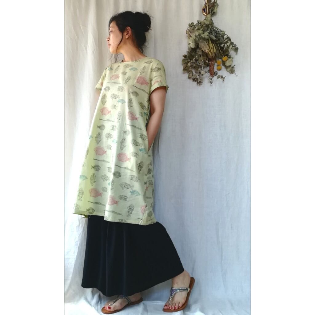 エキゾチックな模様のインドらしい魚たちがプリントされた個性的なミニワンピース。