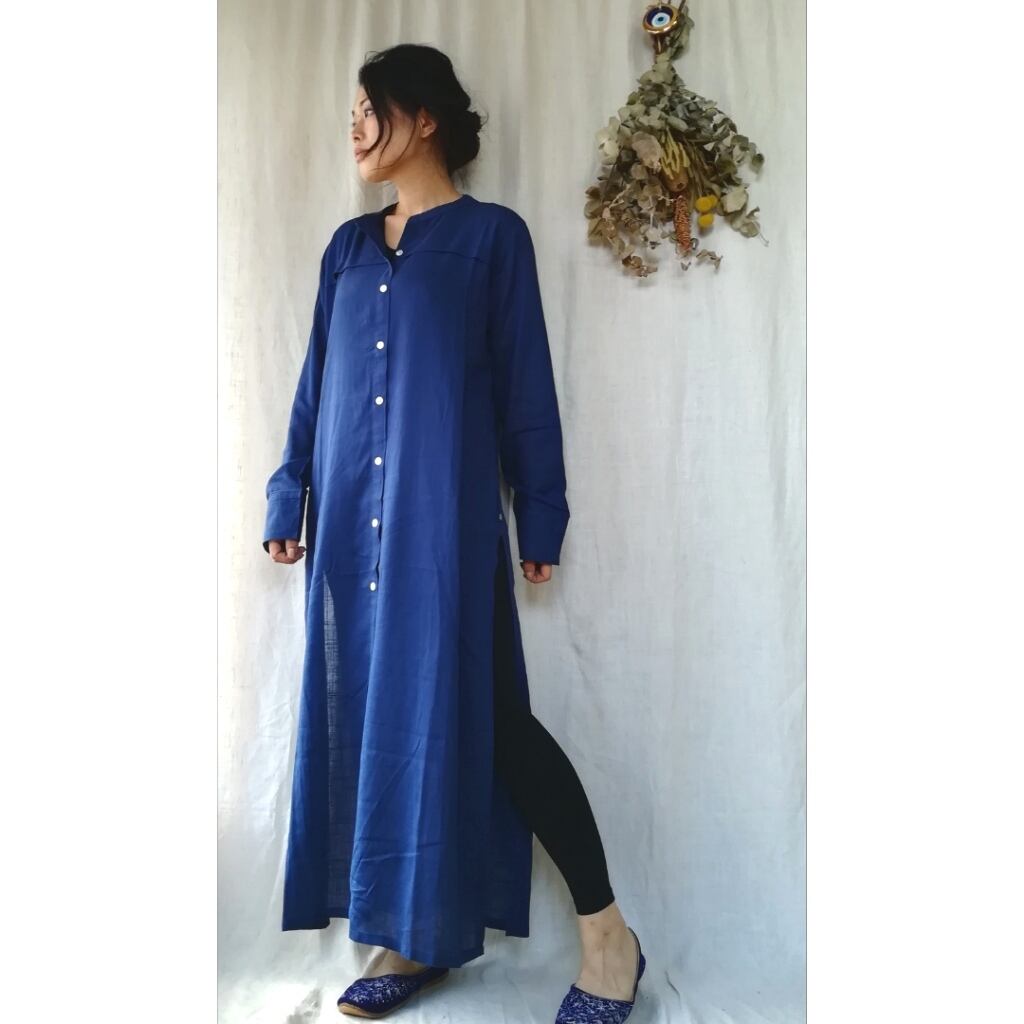すとんとすっきりストレートライン。ワークウエアタイプのシンプルなクルタです。