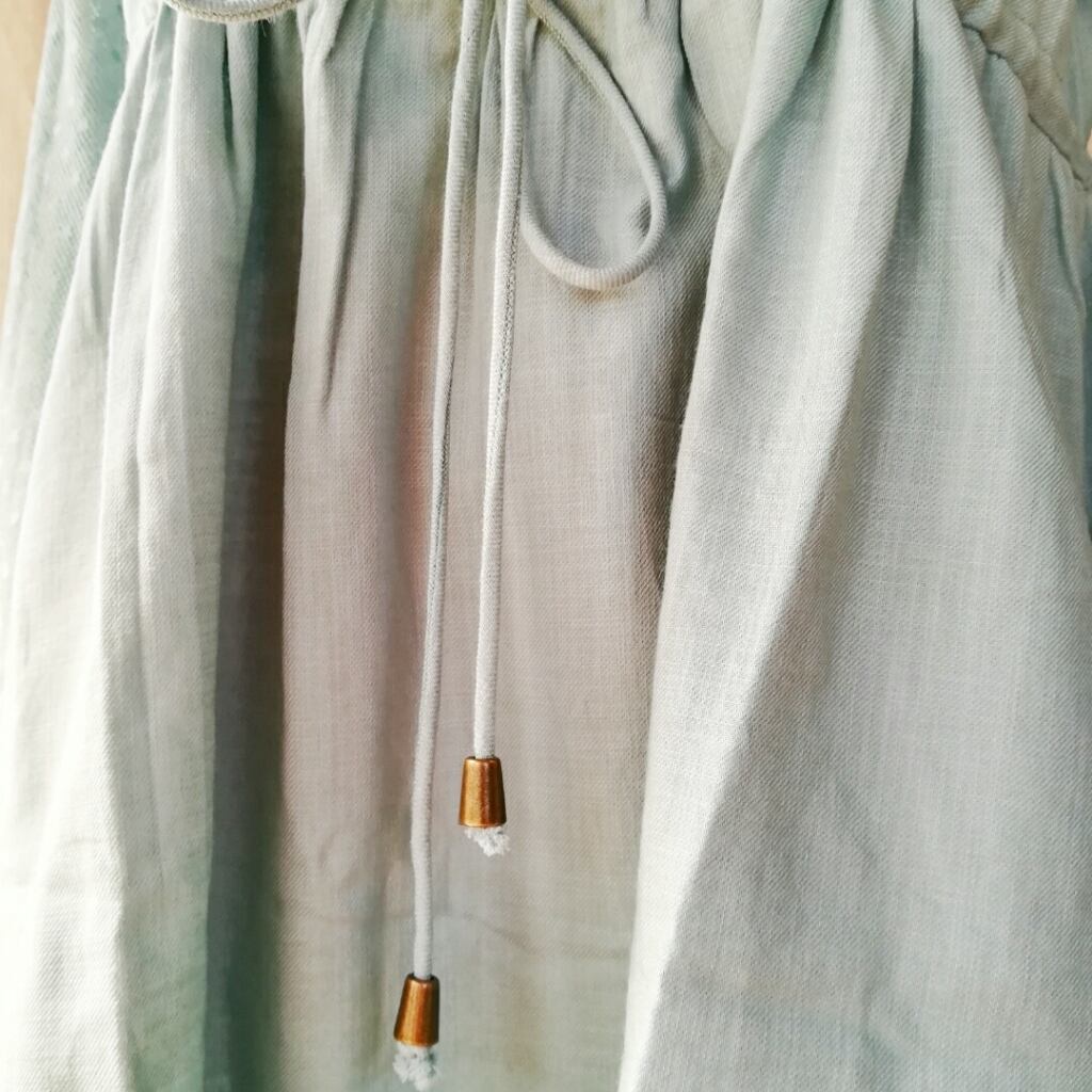 バスト下のドロストでサイズ調節可能。間延びせず着られます。(ゴムは入っておりません)