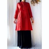 深すぎず明るすぎない真紅の赤が美しいスタンドカラーチュニッククルタ。