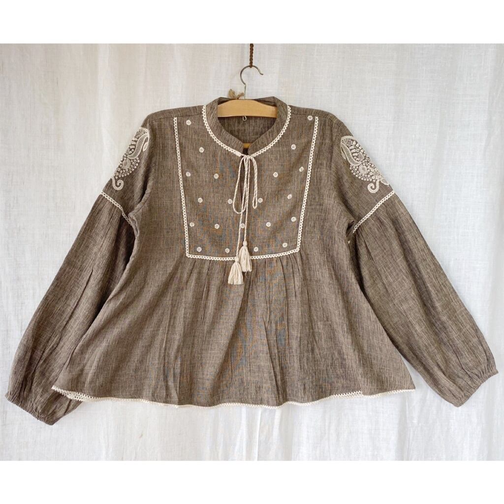見頃はほとんど無地、ベージュの混ざったヘザーブラウン。落ち着いた色彩で着やすいです♡
