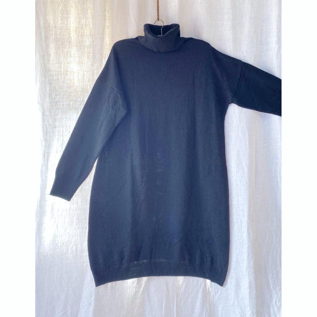 Paisley Embroidery Lace knit Dress Tunicオーバーサイズ タートルネック ニット チュニック ワンピース BLACK