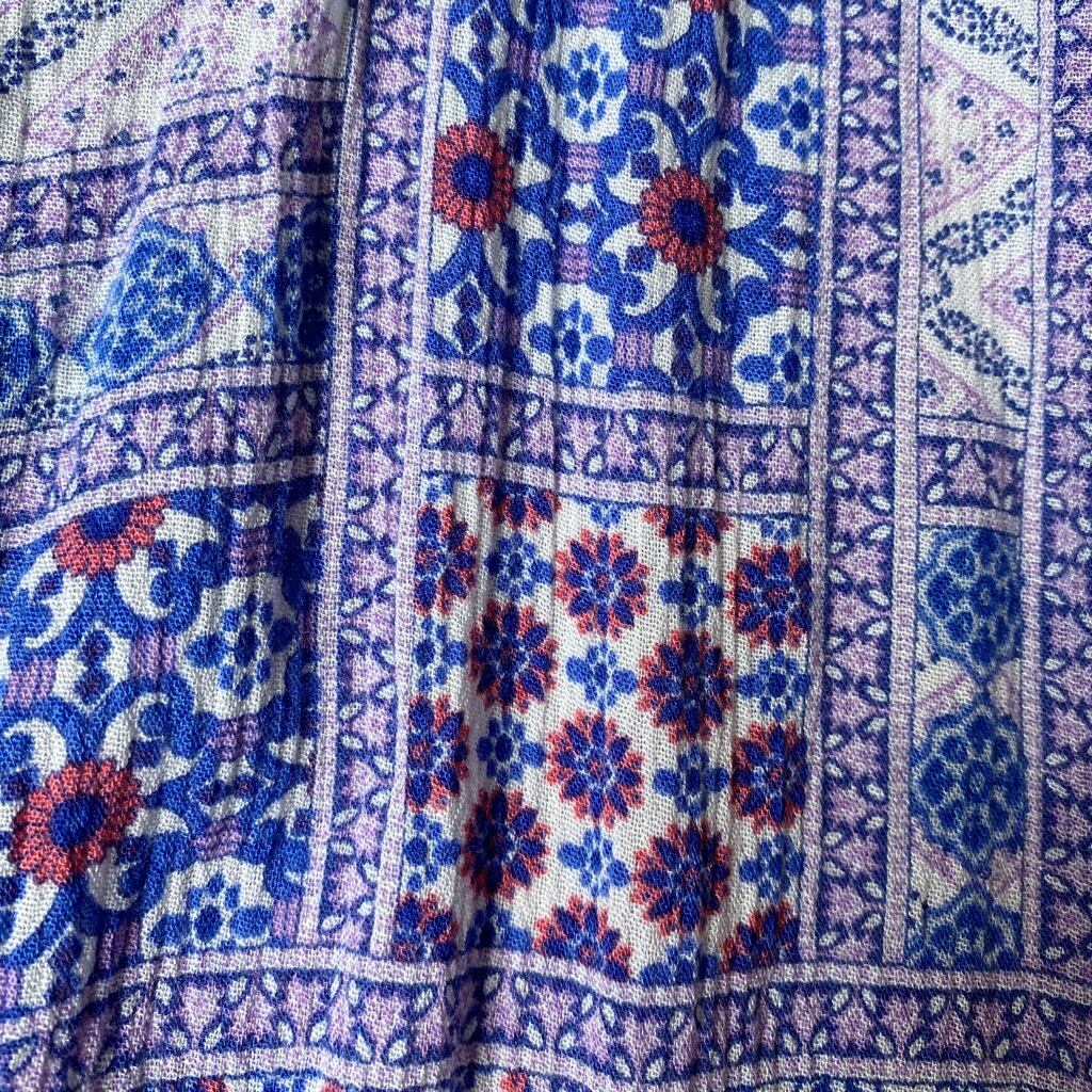 Ethnic flower Printed Straight Wide Wrap Pants 楊柳 シワ加工 エスニック プリント ワイド ストレート ラップ パンツ BLUE PURPLE×WHITE | Amra