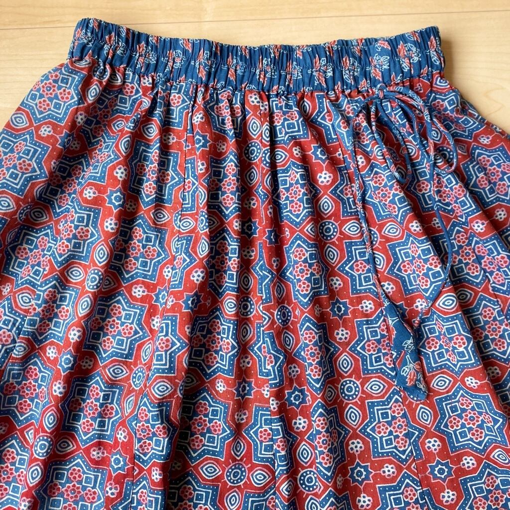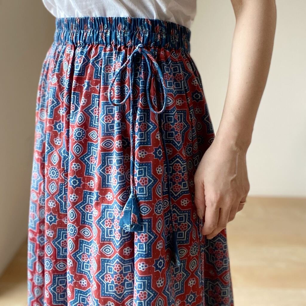 Ajrakh Hand blockprint skirt アジラック ハンドブロックプリント コットン フレア スカート RED×INDIGO