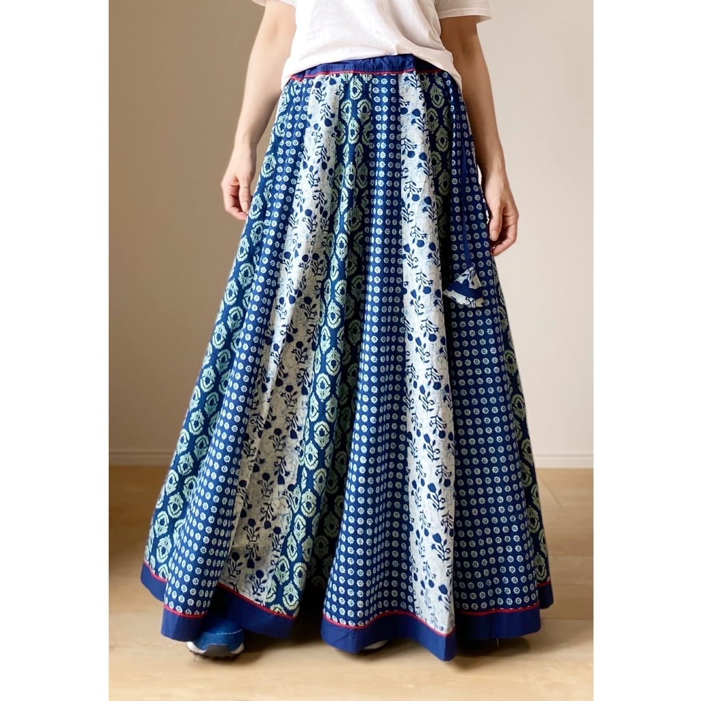 Blockprint Indigo skirt ブロックプリント コットン フレア スカート インディゴ INDIGO